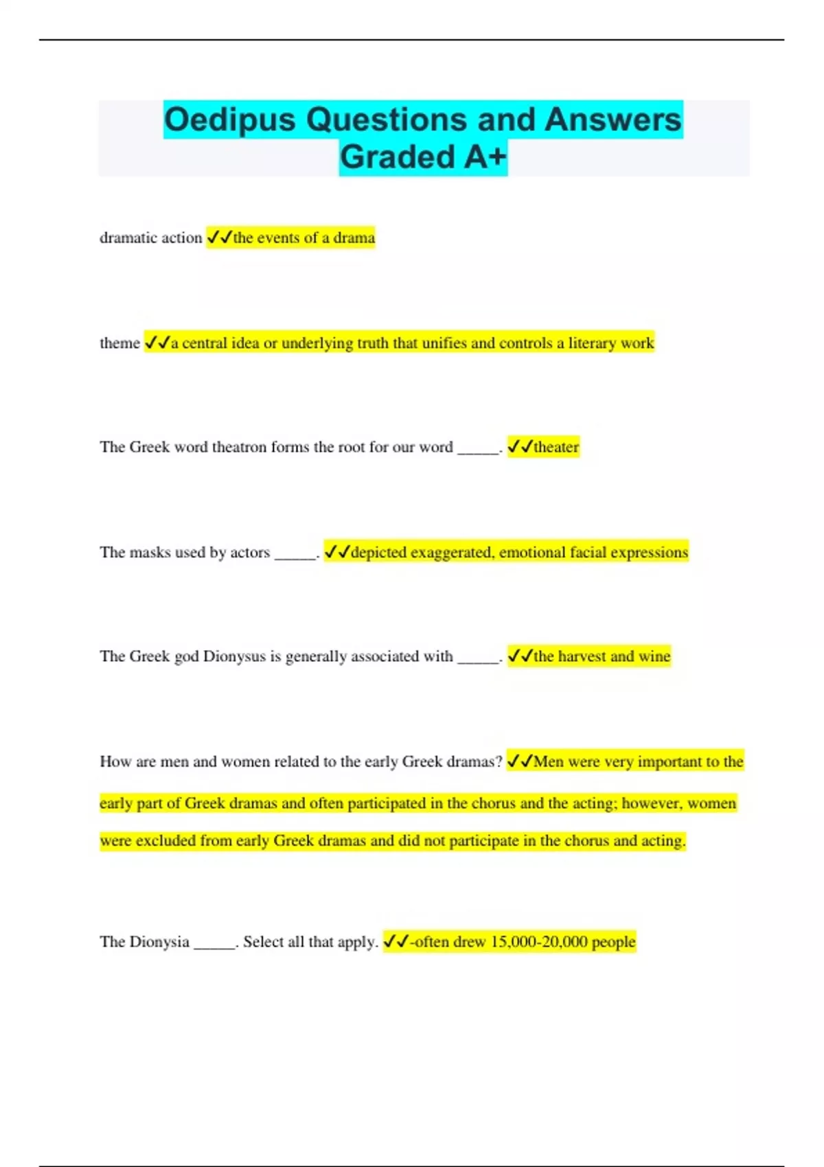 Source: hljsgwyzyk.pages.dev Oedipus Study Guide QA Exam Question And Answers 2023 Exams Nursing Docsity , Sophocles' tragic play Oedipus The King dramatises the spectacular deterioration of its titular protagonist as he uncovers the devastating truth of his own identity Exam-focused quizzes for Oedipus the King by Sophocles